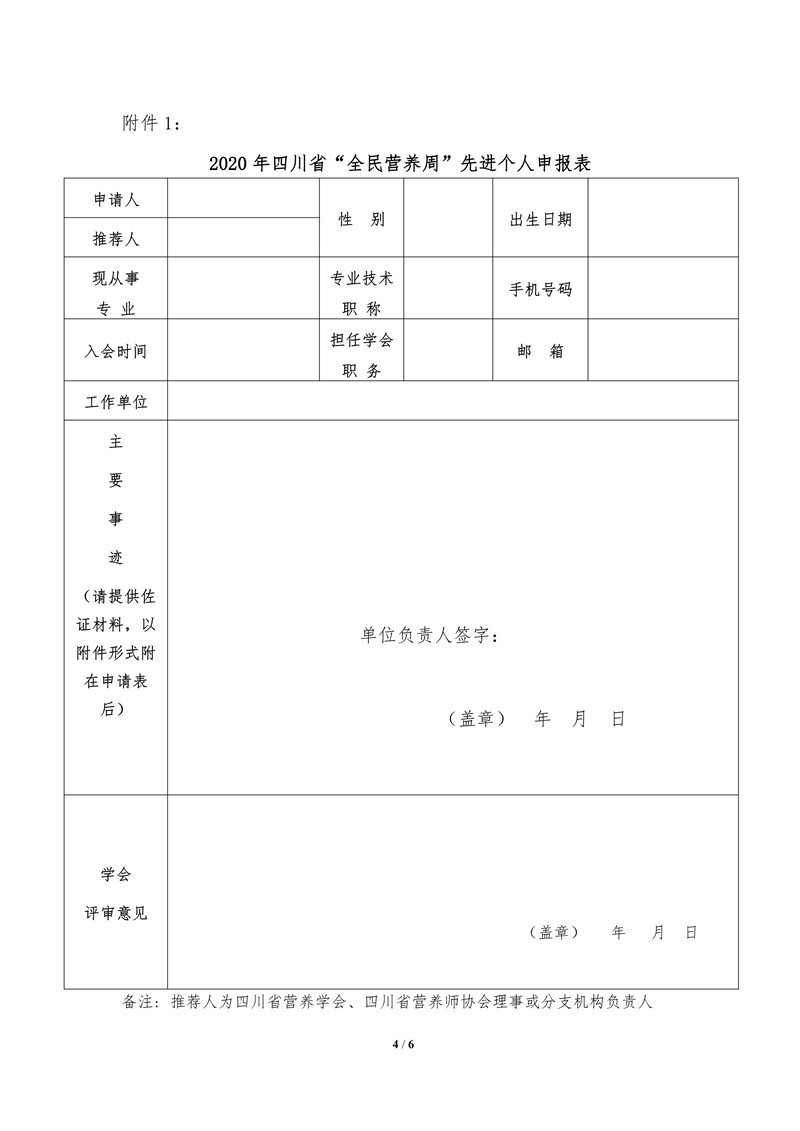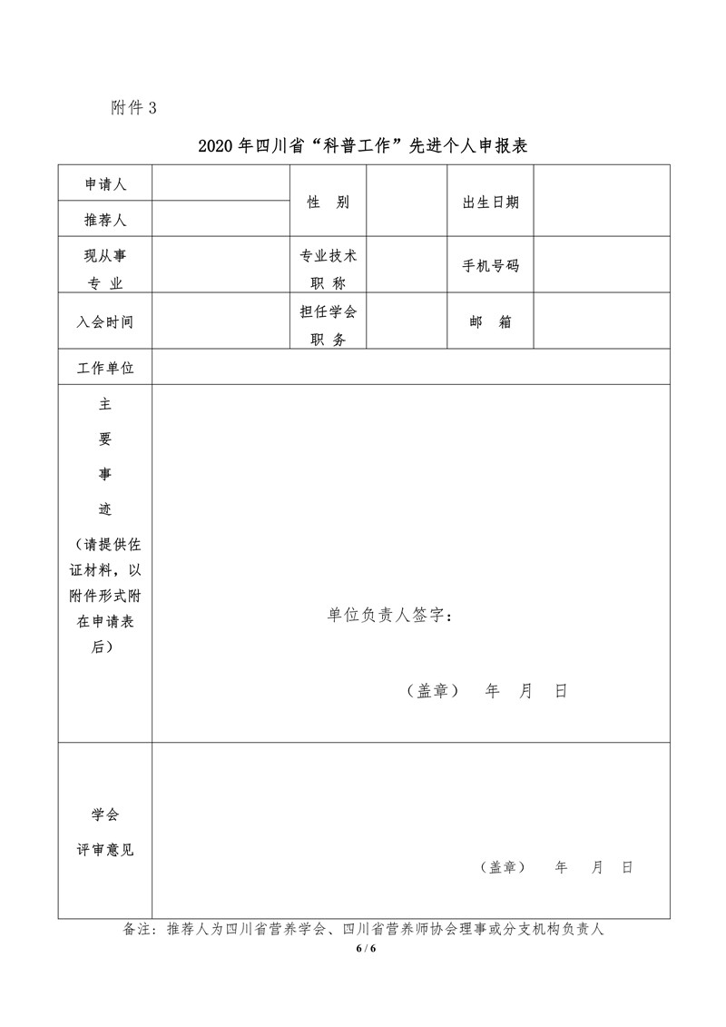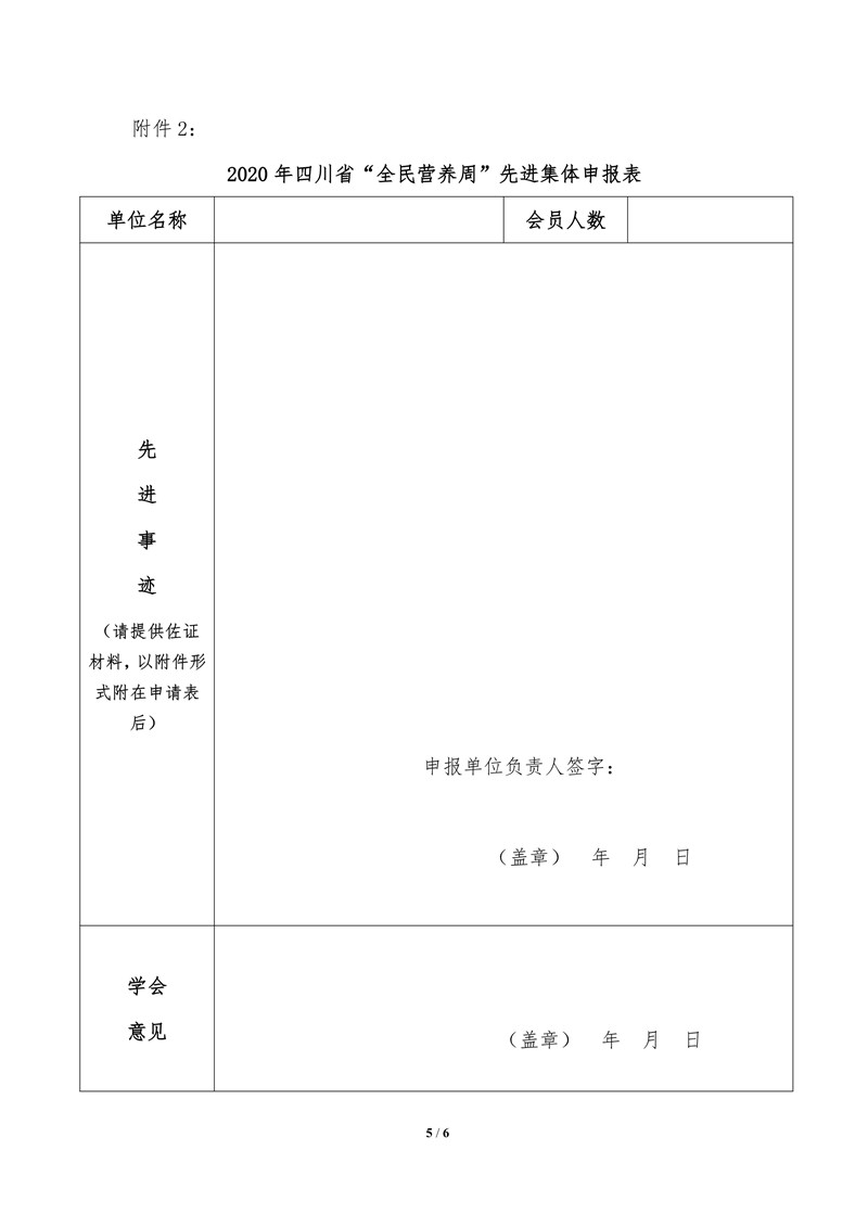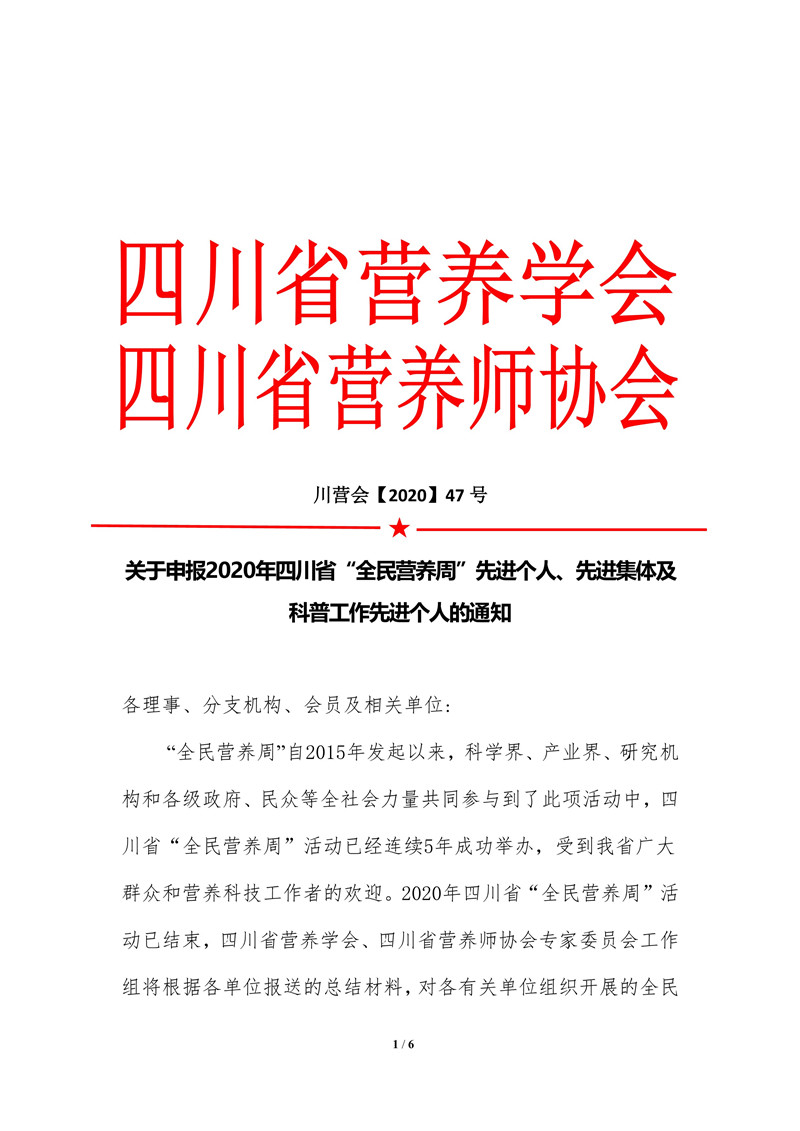 四川省营养学会关于表彰学会工作先进个人、先进集体的通知